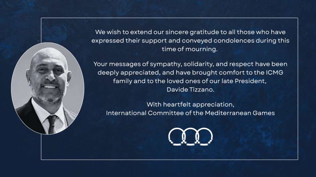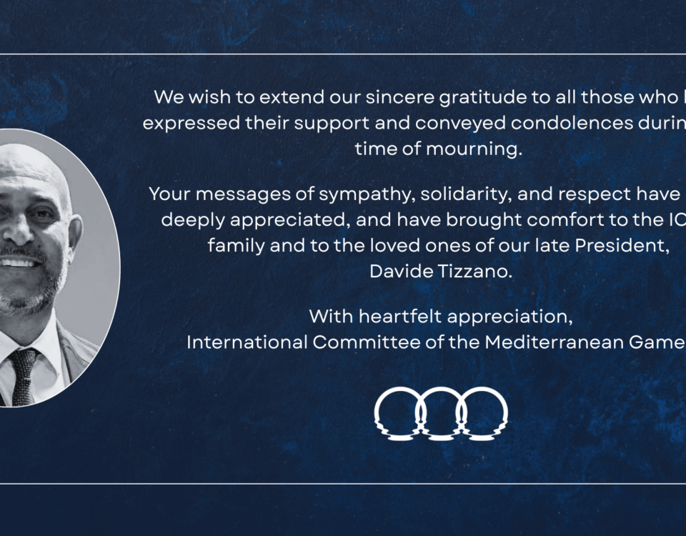 The International Committee of the Mediterranean Games announces with deep sorrow the loss of its President, Davide Tizzano, who passed away today. Davide Tizzano served the ICMG with dedication, responsibility and integrity, […]