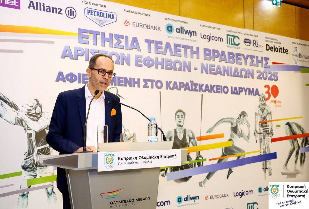In his address, the President of the Cyprus Olympic Committee, Georgios Chrysostomou, congratulated the winners of the awards, emphasizing that their distinctions are the result of systematic effort, perseverance, and dedication to the values of Olympism. He also reiterated the longstanding policy of the Cyprus Olympic Committee to consistently support all federations without discrimination, providing equal opportunities for all athletes.